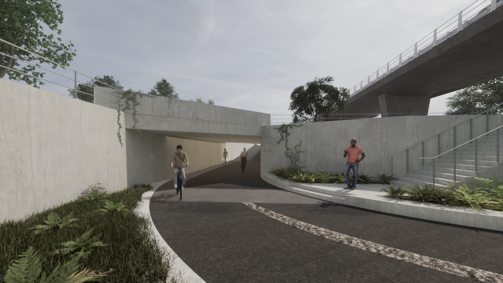 De werken aan de fiets- en voetgangerstunnel onder de Louis Blériotlaan aan The Loop zijn vandaag gestart. Aan beide zijden komt een fietshelling, zodat fietsers niet meer met de fiets aan de hand de trappen op en af moeten. Als alles goed gaat, heropent de tunnel in september.