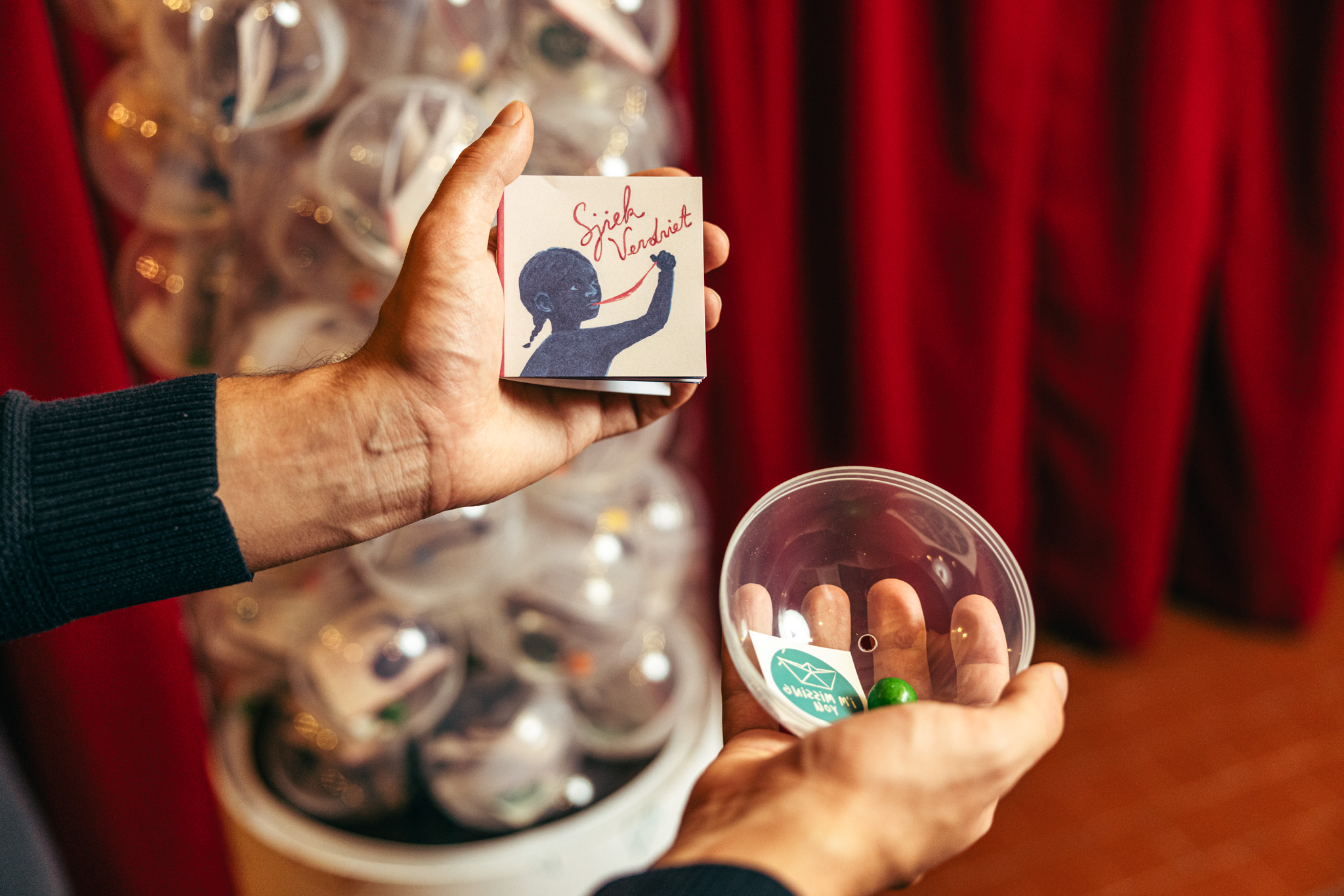 Museumbezoekers die in het Huis van Alijn een jeton in de 'sjiekenbak' steken, krijgen naast kauwgum ook een boekje met een verhaal over verdriet, geïllustreerd door Sassafras De Bruyn. Het project is een samenwerking met de vzw Missing You.