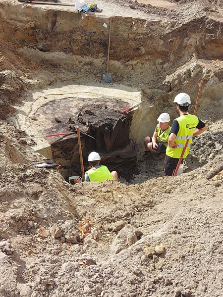 De werken liepen evenwel wat vertraging op om een wel heel bijzondere reden. Bij het afgraven van het A-veld stuitten medewerkers immers op enkele archeologische vondsten. Uit nader onderzoek bleek het onder meer te gaan om een waterput uit de Romeinse tijd. De houten constructie werd volledig in kaart gebracht, ontmanteld en ingepakt, waarna de aanleg van het veld kon hervatten.