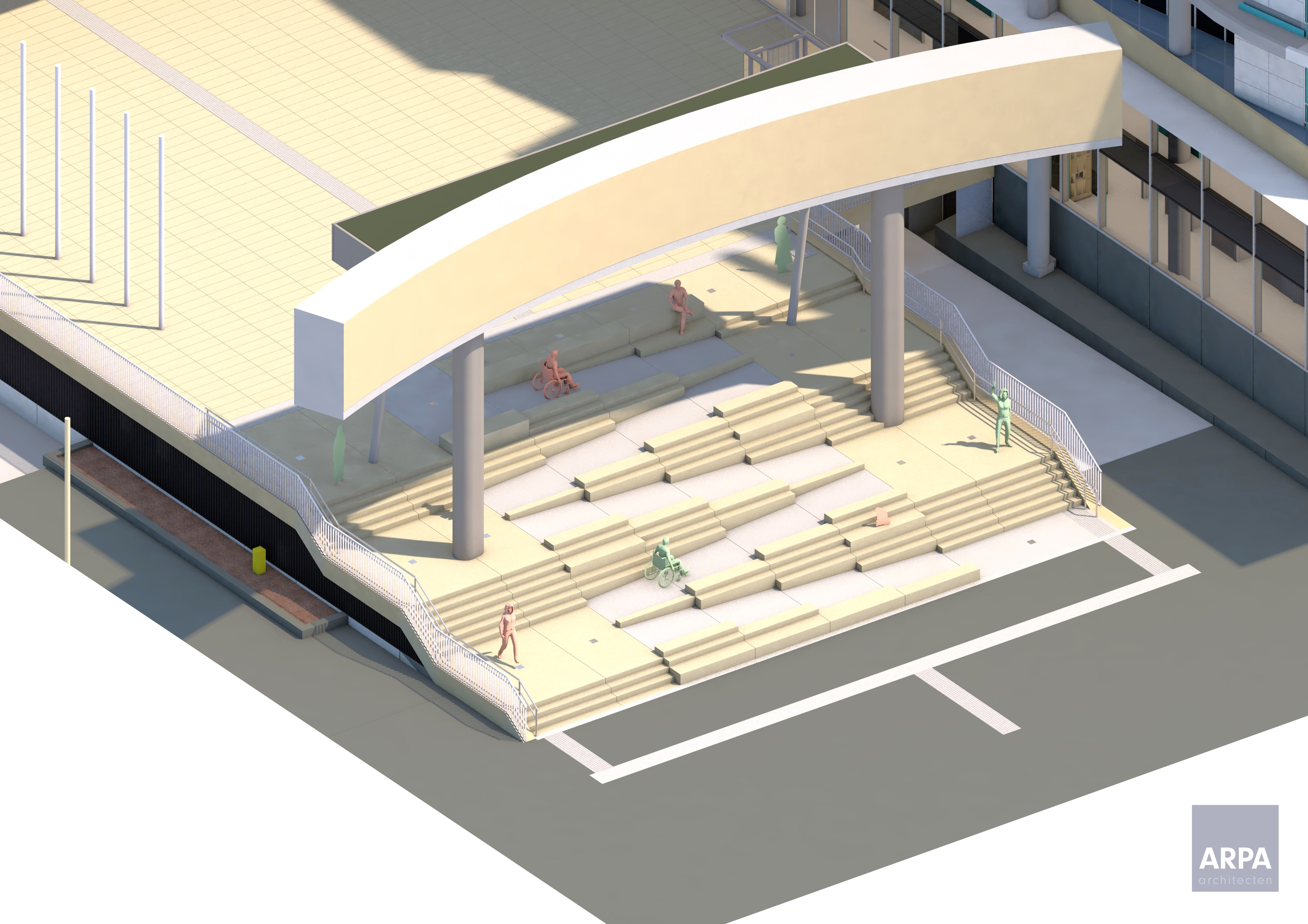 De trap naar het Stadskantoor krijgt in het midden een ingewerkte helling. Beneden, halverwege de trap en boven komen enkele nieuwe zitblokken. De werken starten op 28 januari en duren tot eind mei. Het Stadskantoor is open tijdens de werken, de hoofdingang blijft bereikbaar via een trap en een tijdelijke helling aan de zijkant van het gebouw. Ook de fietsenstalling blijft toegankelijk via een smallere ingang vlak naast de werfzone. Er komt signalisatie aan de werfafsluiting om bezoekers de weg te wijzen.