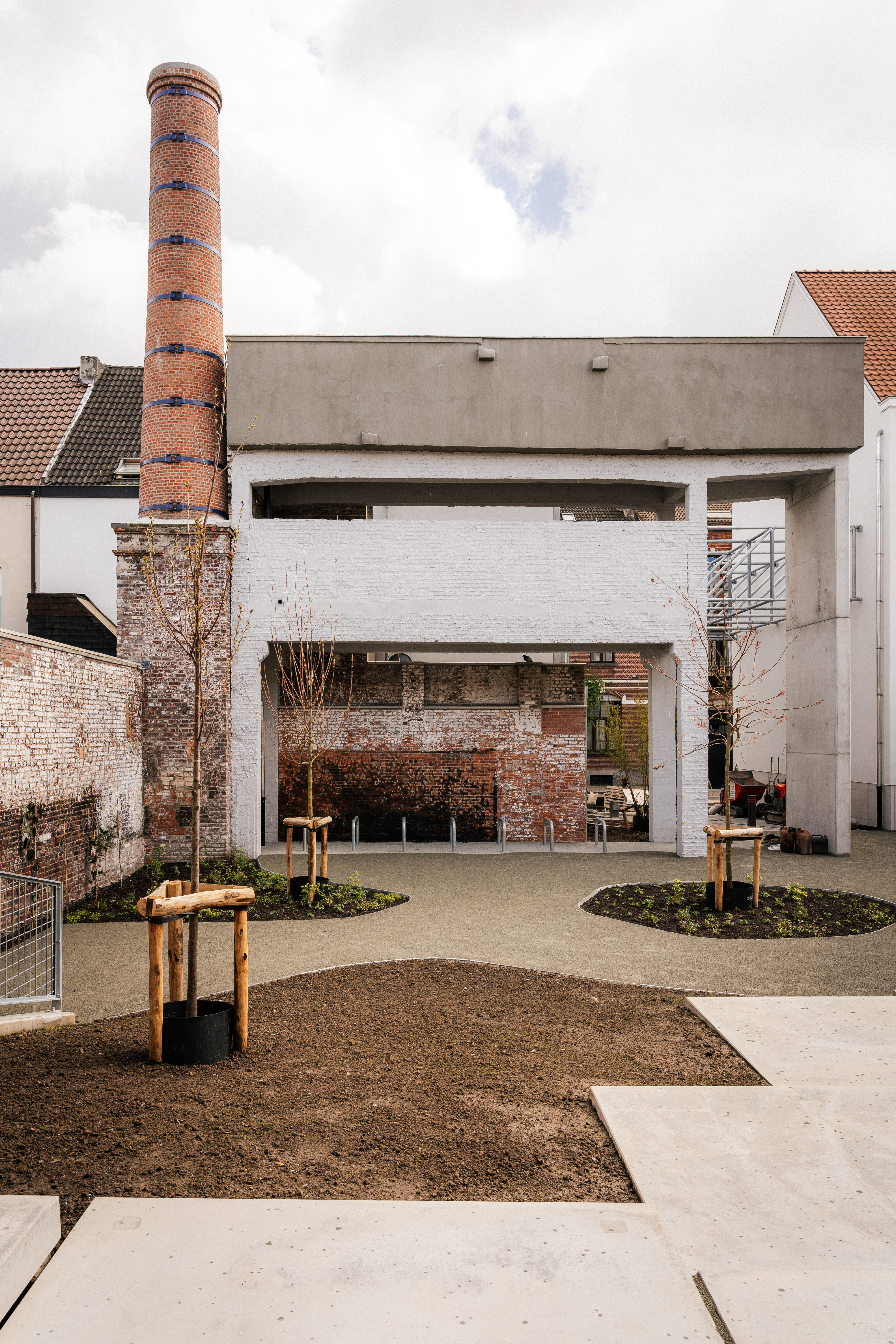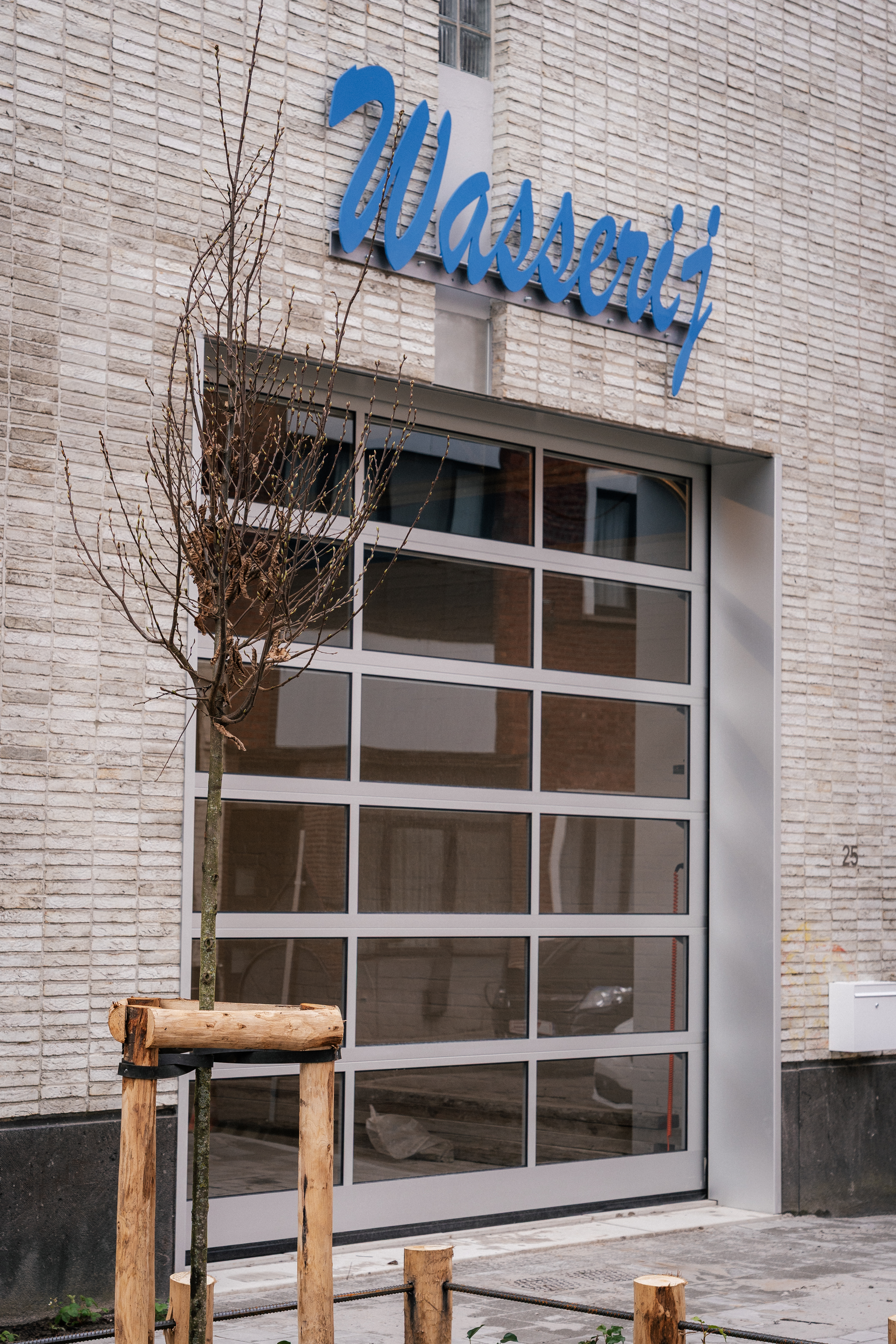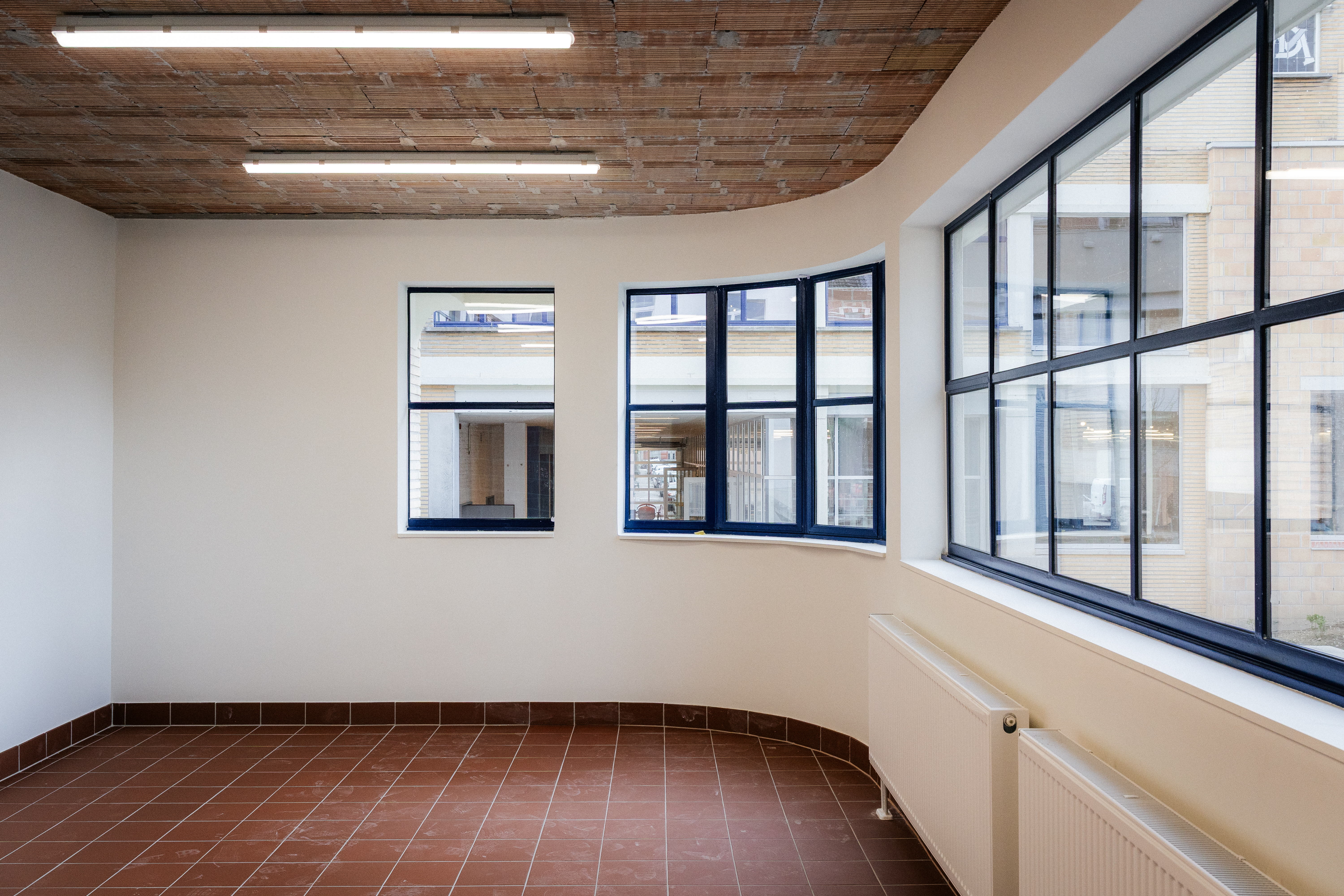 Ook het industriële wasserijgebouw werd volledig verbouwd. Op het gelijkvloers is er een multifunctionele ruimte voor bijvoorbeeld ontmoetingen en tentoonstellingen. Op de tussenverdieping is er ruimte voor een buurtgerichte horecazaak met een terras op de binnenplaats. De verdieping biedt plaats aan verschillende ateliers. Er komt ook een sportzaaltje. Langs de Kunstenaarsstraat is er een toegang tot een nieuwe buurtfietsenstalling.