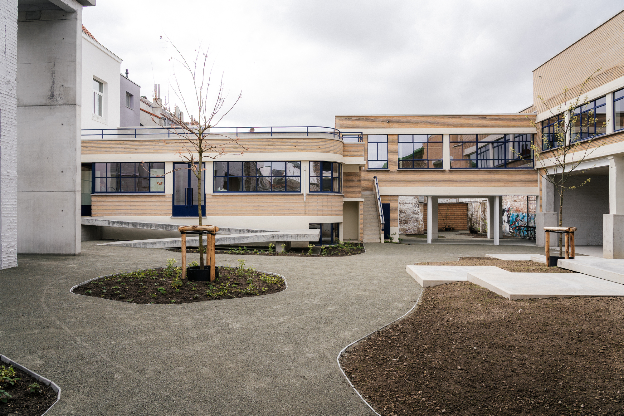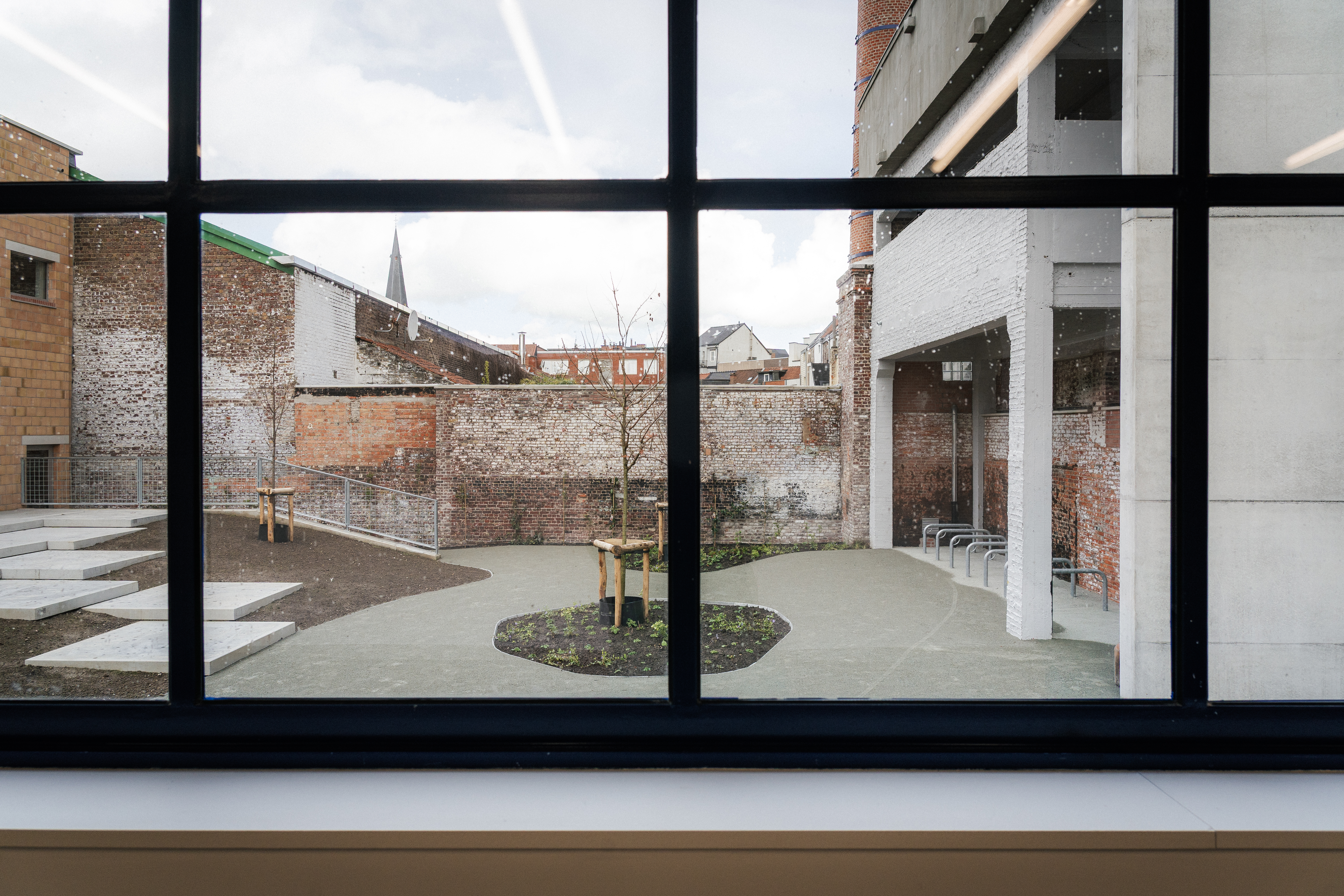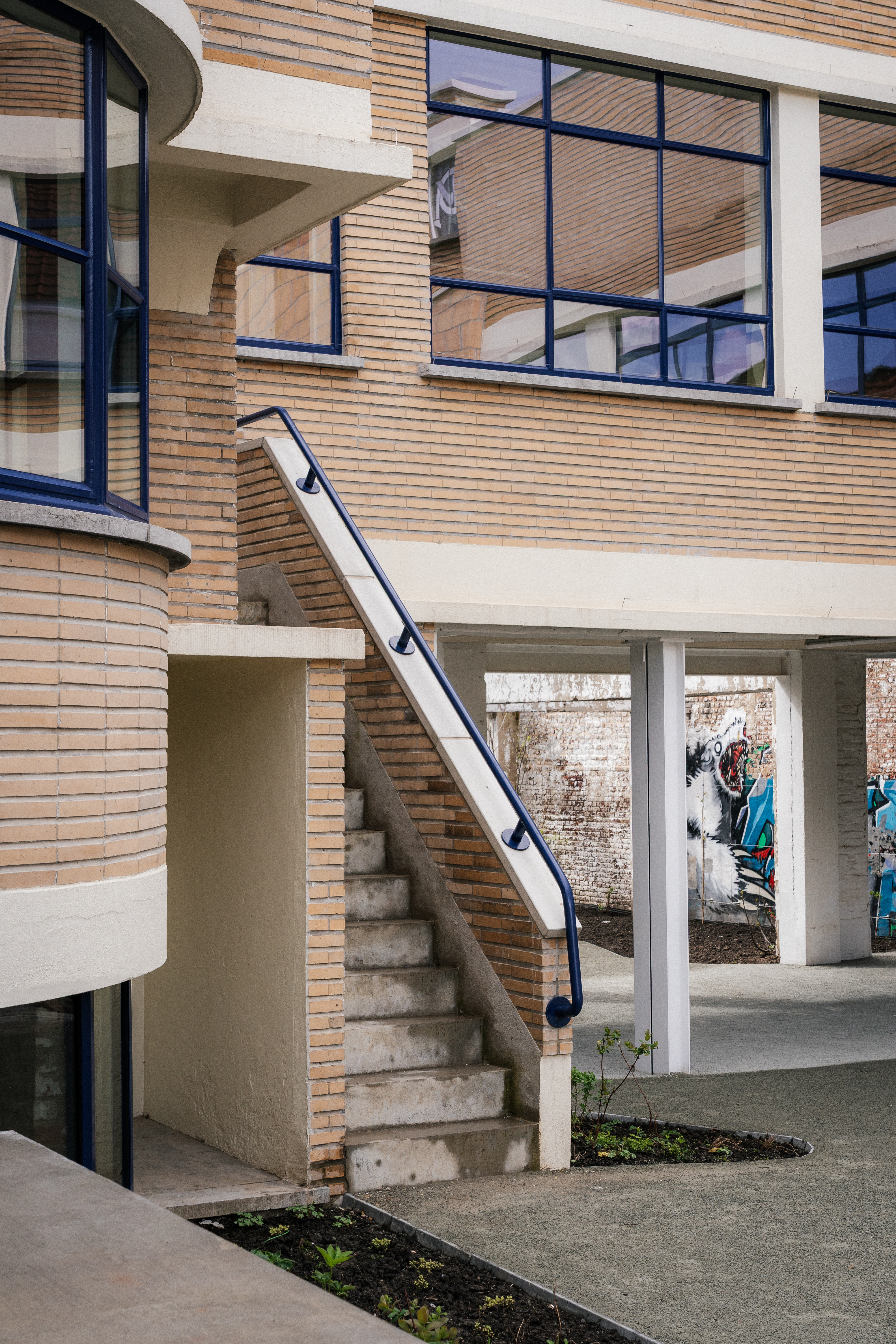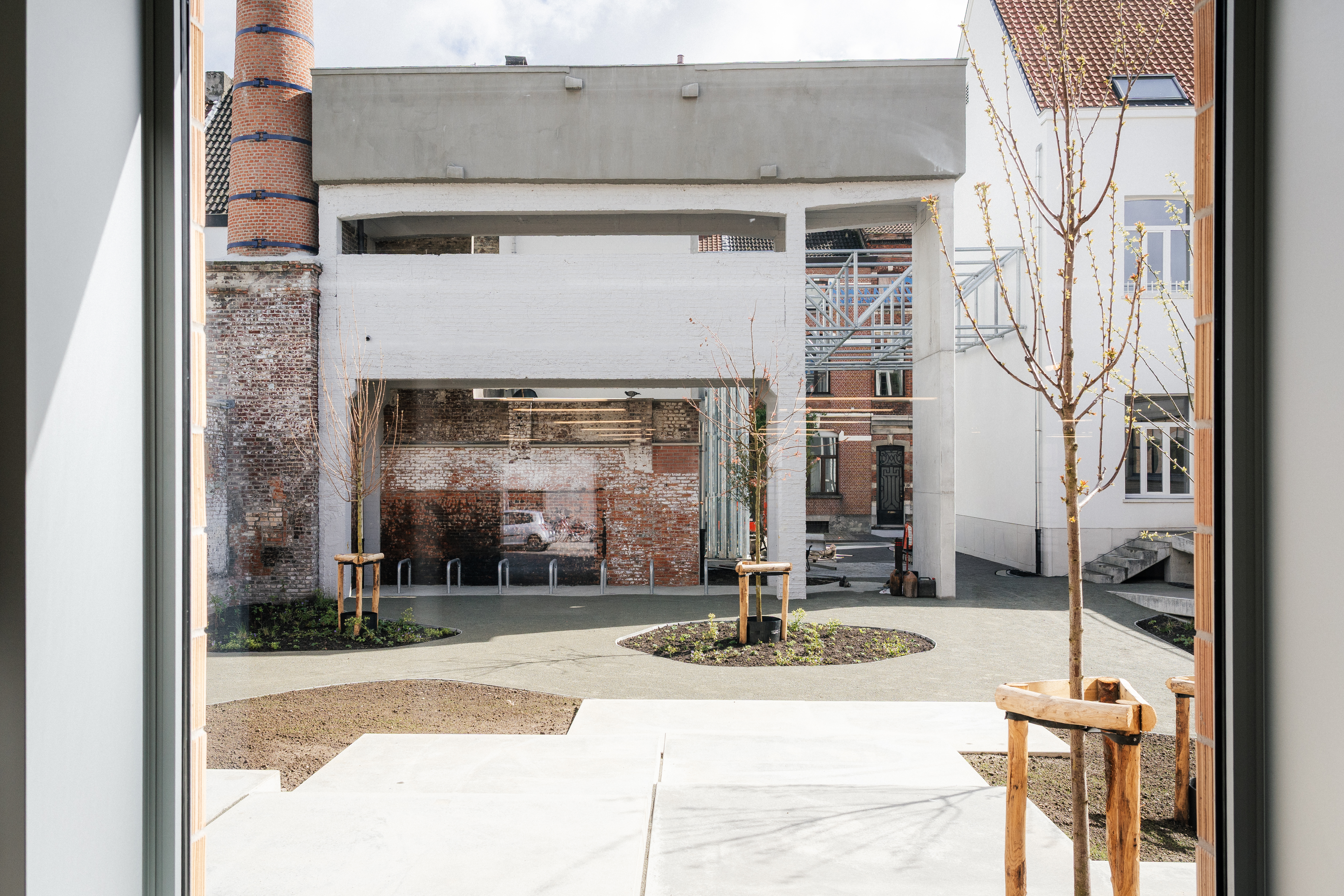 Ook het industriële wasserijgebouw werd volledig verbouwd. Op het gelijkvloers is er een multifunctionele ruimte voor bijvoorbeeld ontmoetingen en tentoonstellingen. Op de tussenverdieping is er ruimte voor een buurtgerichte horecazaak met een terras op de binnenplaats. De verdieping biedt plaats aan verschillende ateliers. Er komt ook een sportzaaltje. Langs de Kunstenaarsstraat is er een toegang tot een nieuwe buurtfietsenstalling.