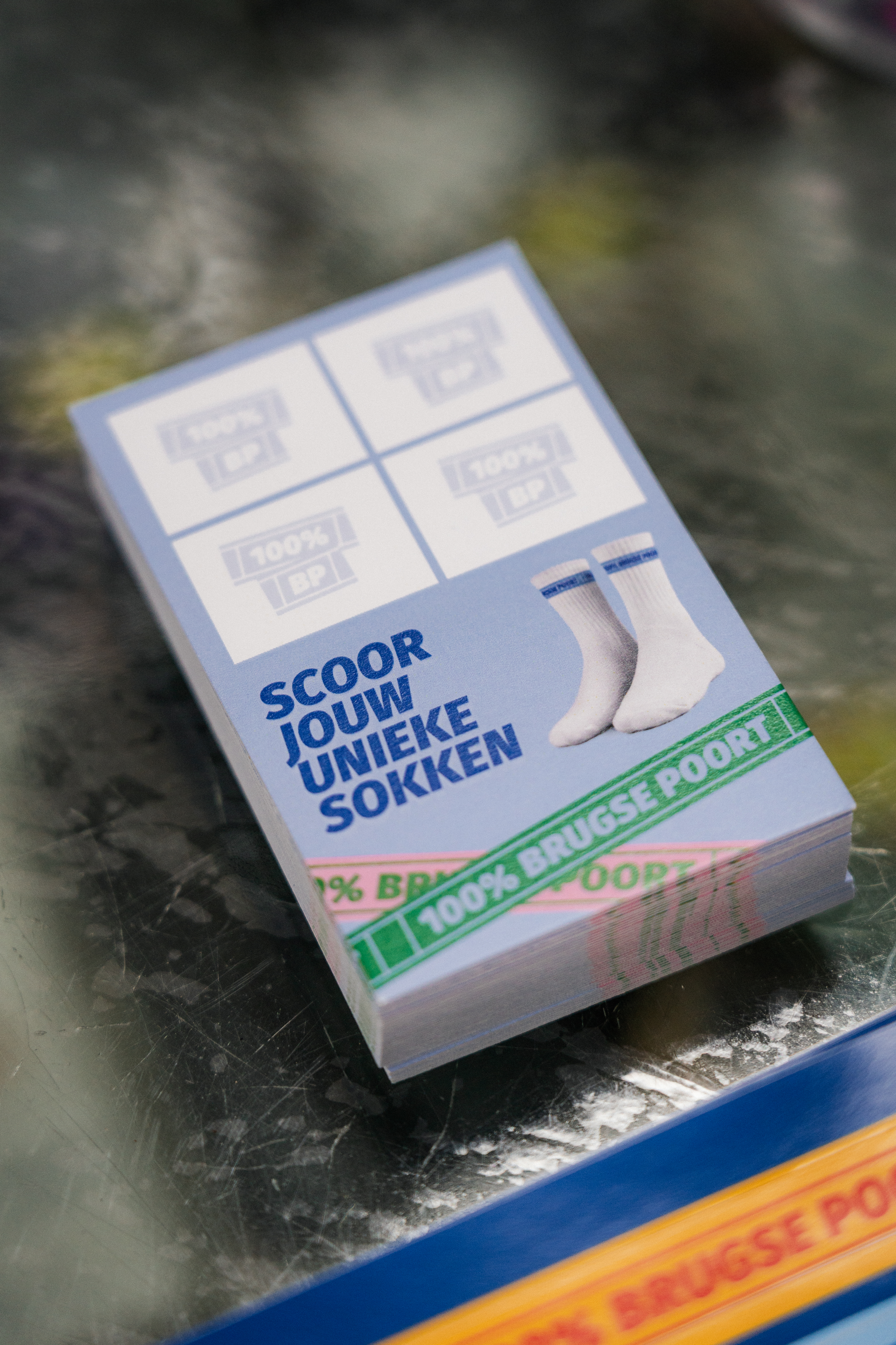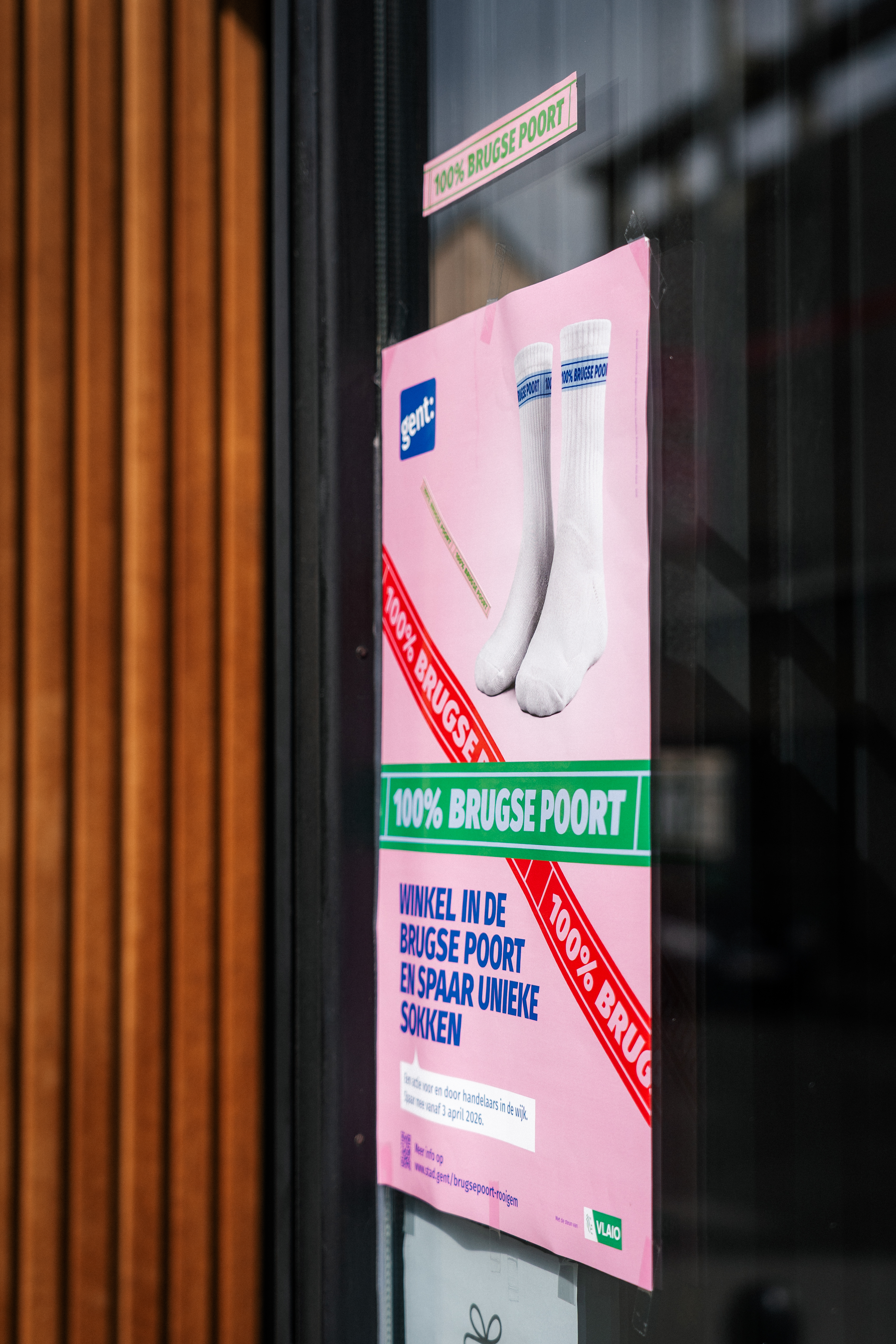 De campagne gaat van start met een spaarkaartactie bij alle deelnemende handelaars. Voor elke aankoop van minstens 5 euro krijgen klanten een stempel. Wie vier stempels van vier zaken verzamelt, krijgt een paar sokken ‘100% Brugse Poort’. De actie loopt tot en met 30 juni. Verder hangen er banners over de Phoenixstraat en Bevrijdingslaan en zijn er affiches en (raam)stickers verspreid over de hele wijk.