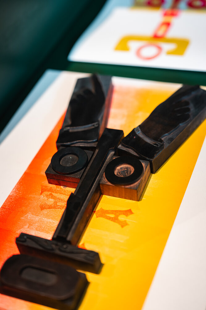 Een houten zetsel voor een van de TypeFaces van kunstenaar Jan Vermandere.